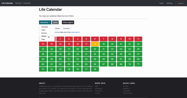 在这篇文章中,我将分享在线生命日历的一些功能 — 可在以下网址使用 onlinelifecalendar.com,如何开始使用它,以及这个网络应用背后的代码细节。如果你想查看代码,你也可以访问开源的GitHub仓库 在这里.