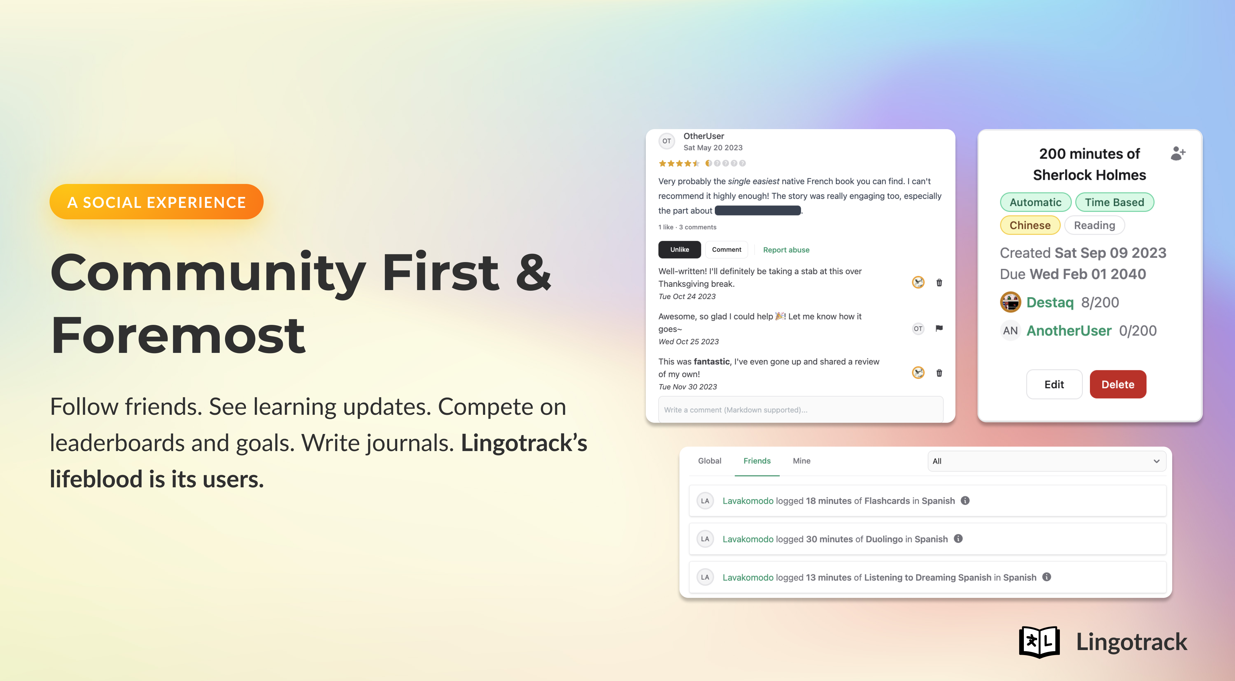经过12个多月的辛勤工作和无数个不眠之夜😅, Lingotrack 终于准备好让您的语言学习之旅变得更有社交性,也不那么令人生畏了。